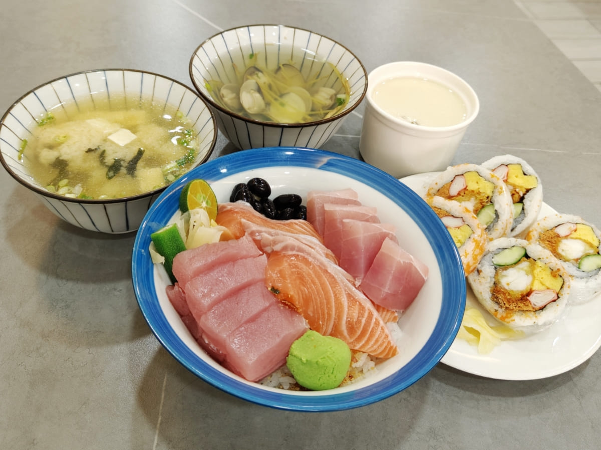 這天和朋友一起來小聚,點了幾樣想試試的料理有刺身丼飯、花壽司,還有湯品,簡單卻很豐盛。