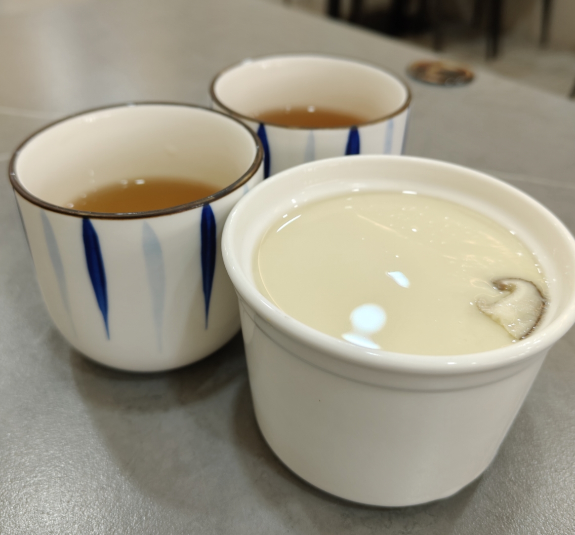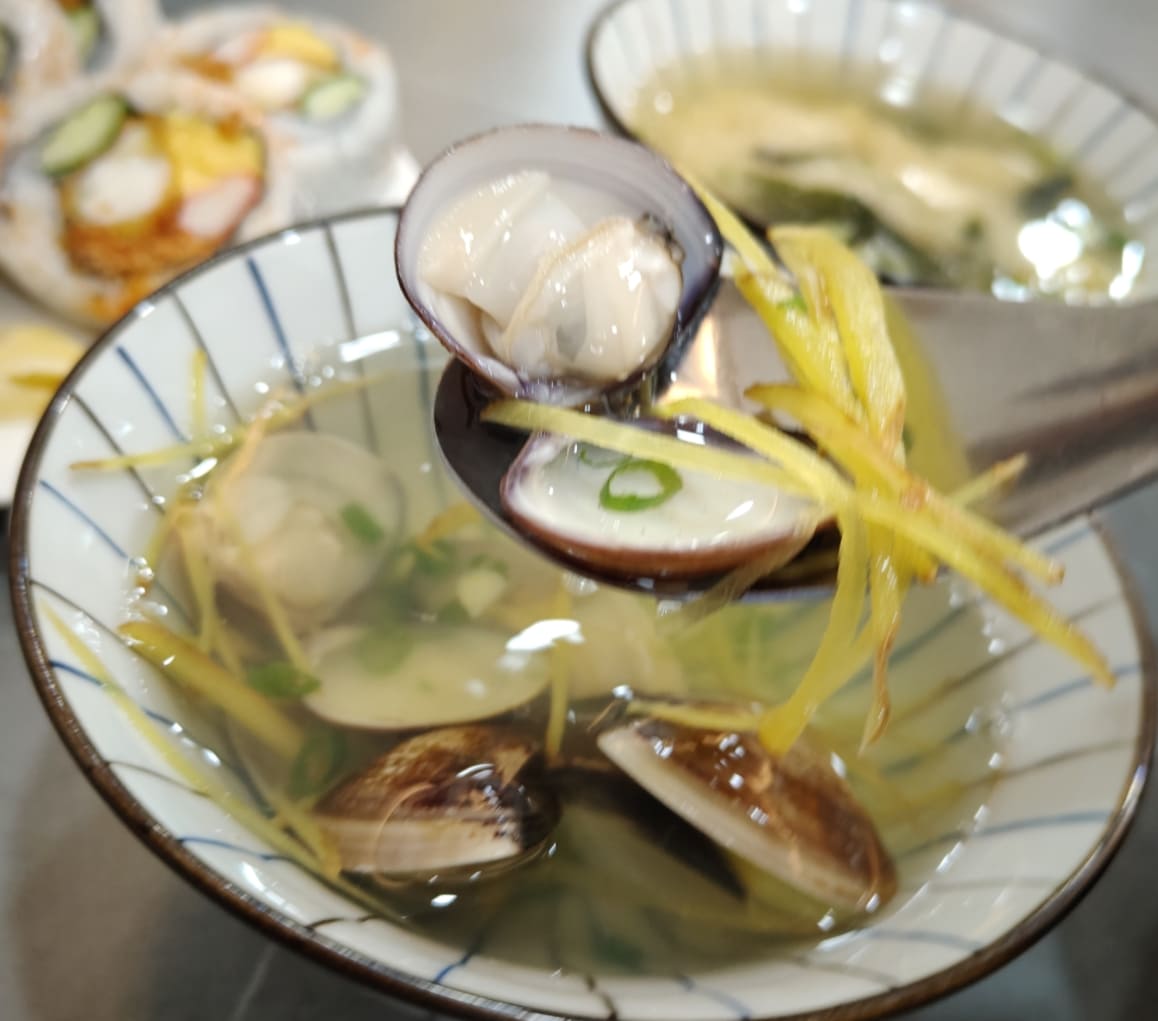 蛤蜊湯的湯色清透,輕啜一口能感受到淡淡薑香與鮮味,蛤蜊新鮮飽滿這兩碗湯品喝完讓心情舒舒服服的。