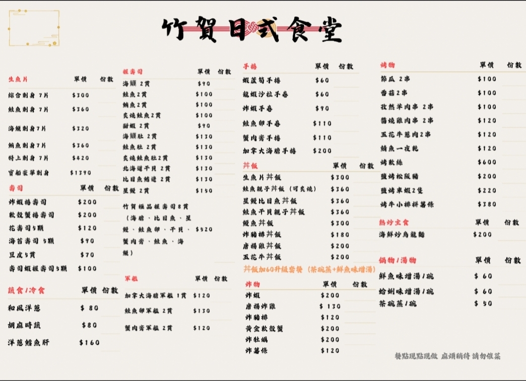用餐心得:竹賀日式食堂整體表現穩定、魚料新鮮、份量實在生魚片厚切新鮮也蠻新鮮的。