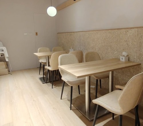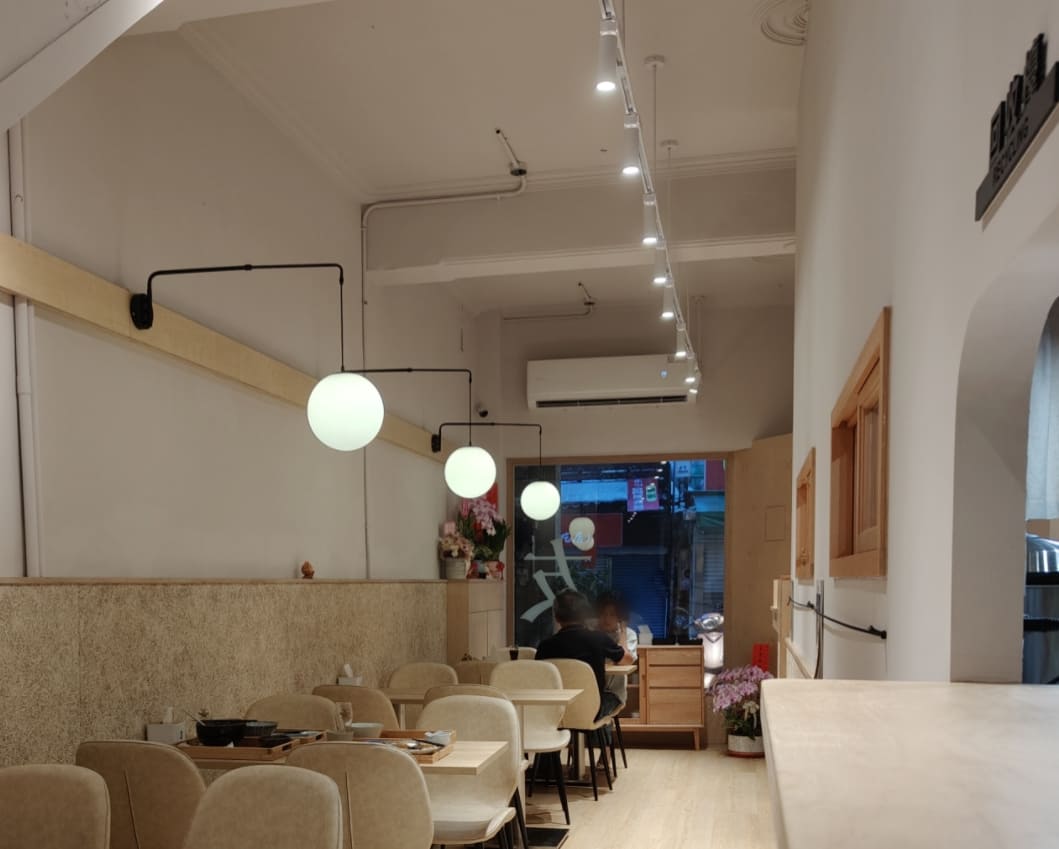 友艾食堂的店面是長形格局,木質調的桌椅搭配柔和燈光,乾淨明亮卻不冰冷。