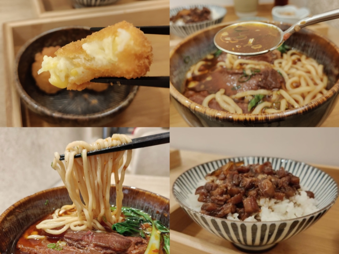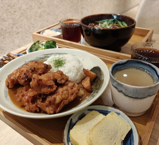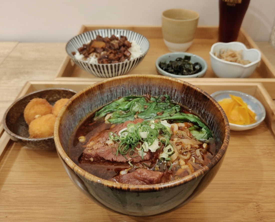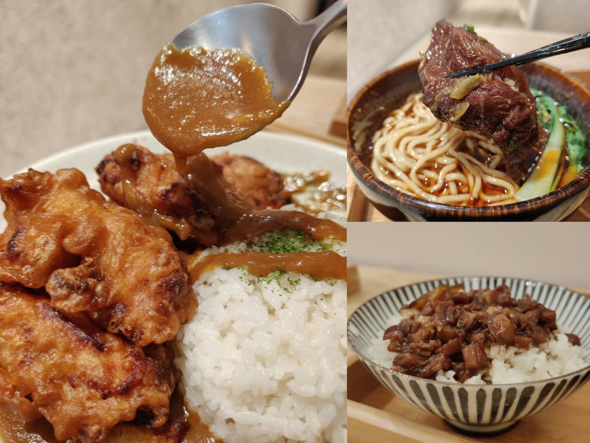 菜單品項不算多,但道道實在。有唐揚炸雞咖哩飯、香香麻辣牛肉麵、南部手切滷肉飯、香烤鯛魚套餐等,另外還能單點幾款小食份量剛剛好,適合想吃巧又吃飽的客人。